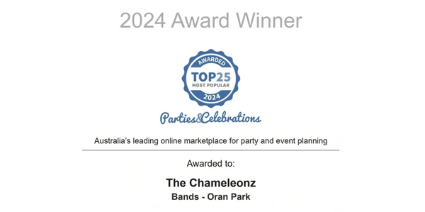 The Chameleonz were listed in Parties and Celebrations Top 25 Most Popular Party and Events Suppliers for 2024.